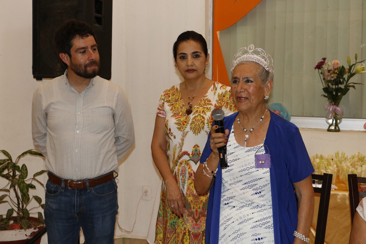 Como parte de la celebración del 11° aniversario, los integrantes del grupo de la tercera edad “Atardecer” de La Aurora, eligieron como su reina 2018, a la señora Rosario Martínez Panduro, quien fue coronada por Adriana Gómez Funes, presidenta del Sistema DIF.