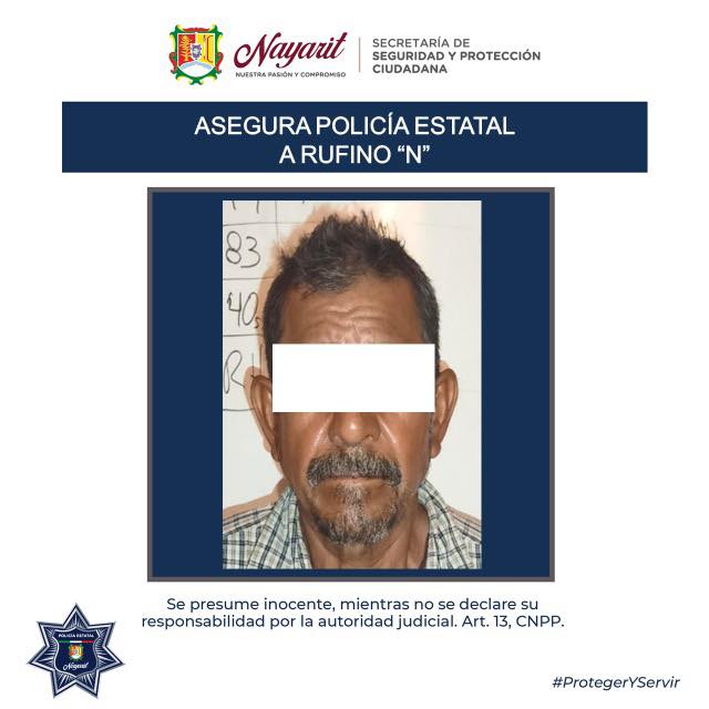 4.- Rufino “N” “N”, de 52 años, en el municipio de Acaponeta, asegurándole una bolsa de plástico conteniendo en su interior una sustancia cristalina y granulada con las características de la droga conocida como cristal.