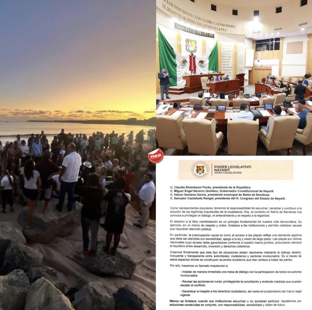 “Las playas son bienes nacionales”, señalaron en un documento enviado a Claudia Sheinbaum, al gobernador y autoridades municipales. La presión política crece tras bloqueos, tensión y detenciones en Bahía de Banderas.